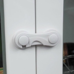 Не позволяет ребенку открывать створки шкафчиков и прищемить пальцы. Крепится на деревянные, пластмассовые, а также стеклянные поверхности. Ширина замка 10см. Инструкция по применению: