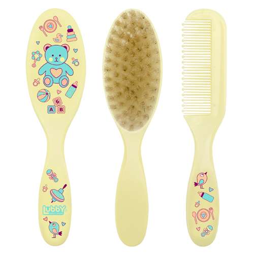 Набор детская расческа и щетка "Малыши и малышки" разработан специально для нежного ухода за волосами Малыша. Размер и форма расчески и щетки специально подобраны для комфортного размещения в руке и легкого расчесывания волос. Мягкая натуральная щетина щетки бережно расчесывает, не повреждая нежную кожу малыша. Нежный цвет и интересный дизайн набора LUBBY превратят процесс ухода за Вашим малышом в настоящее удовольствие.